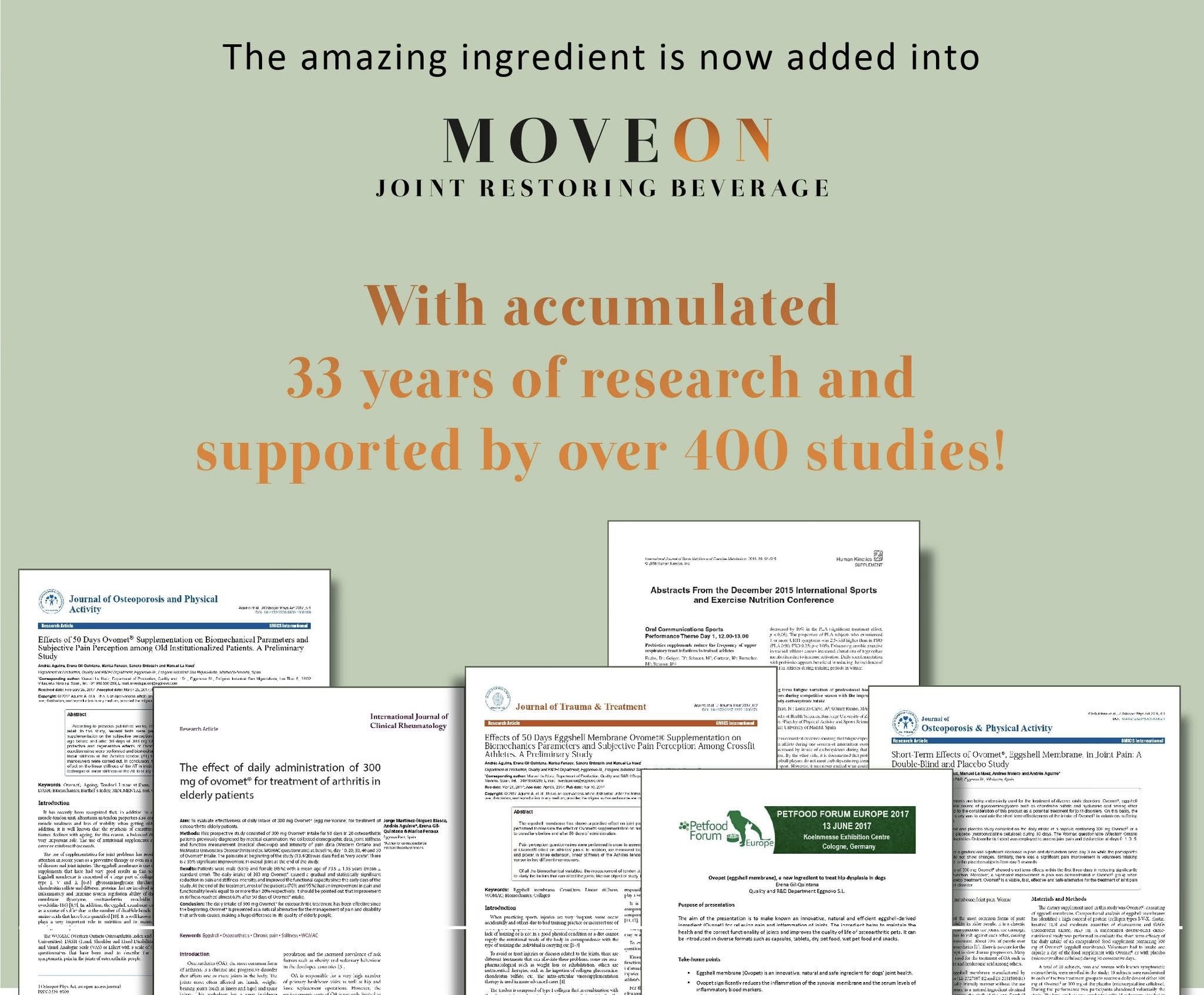Moveon Liveon - First Joint Beverage In The Market with 33 Years of development by medical experts. Patented ingredients providing relief for Arthritis, Osteoporosis, Joint pain, Discomfort & Injury.
